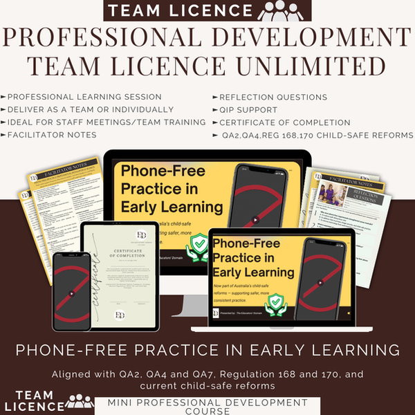Our Professional Learning Sessions are designed for Directors and Educational Leaders to use in staff meetings, team training, or individually — with no additional licences required.